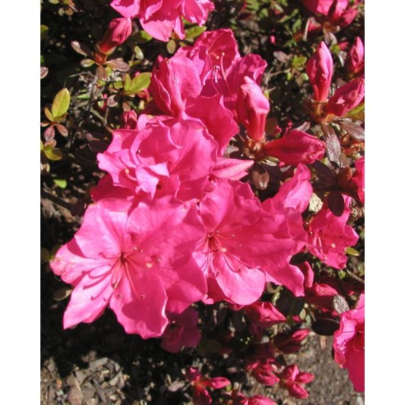 Karminowo-różowa odmiana o dużych kwiatach i średnio silnym wzroście. Krzew ma rozłożysty, płaskokulisty pokrój i po 10 latach dorasta do około 0,35 m wysokości i 0,8 m szerokości. Kwitnie na przełomie maja i czerwca, tworząc efektowną, intensywnie barwną plamę w ogrodzie. Odmiana półzimozielona, o ciemnozielonych, lekko błyszczących liściach, dobrze znosząca mrozy do około -24°C.