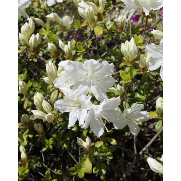 ‘Kermesina Alba’ sprawdza się doskonale w małych ogrodach, na rabatach wrzosowiskowych, w kompozycjach skalnych oraz w pojemnikach, łącząc subtelną elegancję białych kwiatów z kompaktowym, dekoracyjnym pokrojem. Jest to odmiana idealna dla miłośników azalii japońskich poszukujących czystej, stonowanej barwy wiosennego kwitnienia.