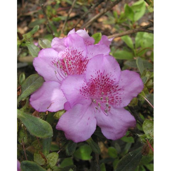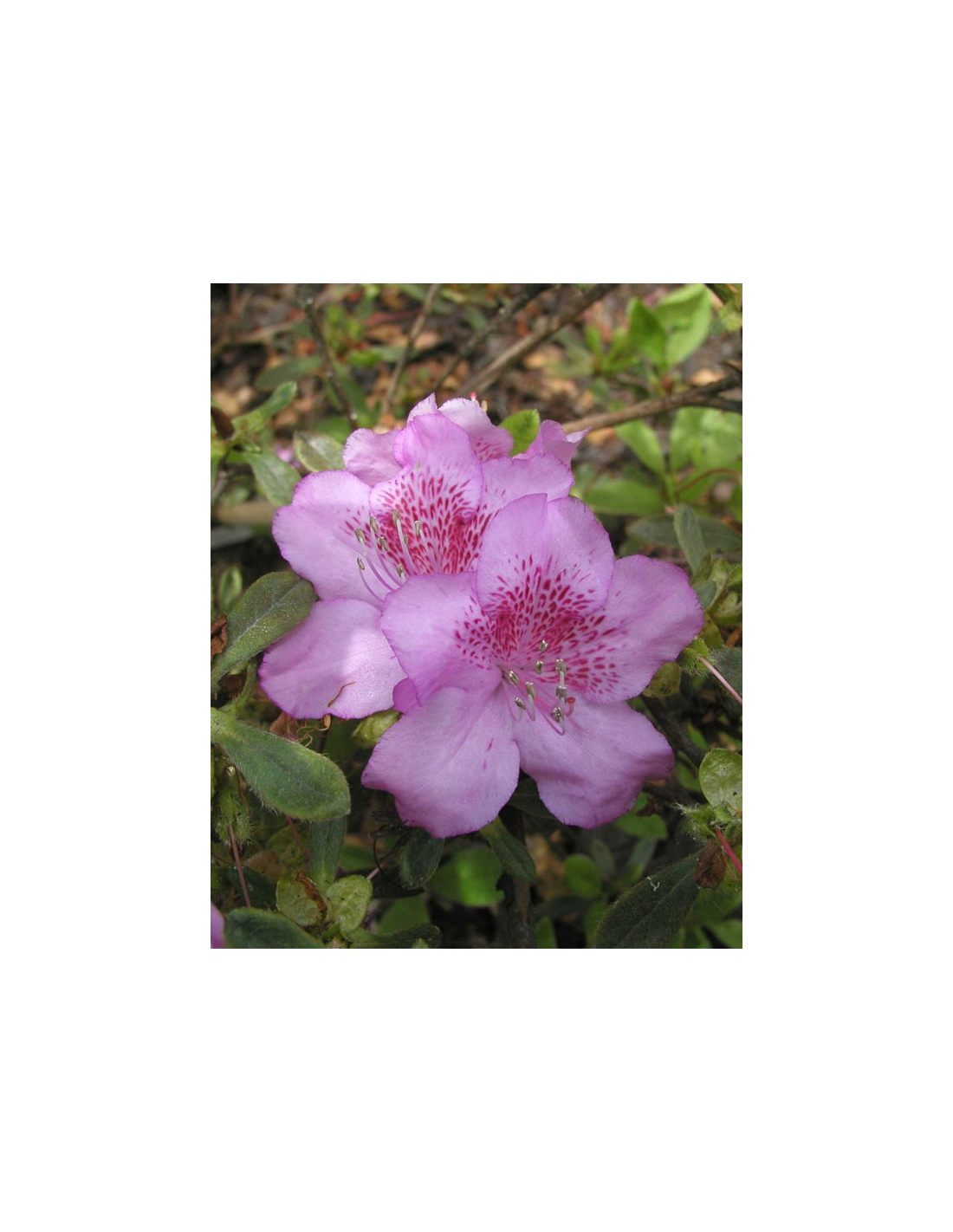Kwiaty są duże, jasnoliliowe, z purpurowymi żyłkami i wyraźnym czerwonym rysunkiem na górnych płatkach. Zebrane po 2–4 sztuki w płaskie, szerokie kwiatostany, pojawiają się bardzo obficie w drugiej połowie maja, tworząc efektowny i dekoracyjny akcent w ogrodzie. Intensywna kolorystyka kwiatów w połączeniu z dużym rozmiarem sprawia, że odmiana przyciąga uwagę i wyróżnia się wśród innych azalii japońskich.