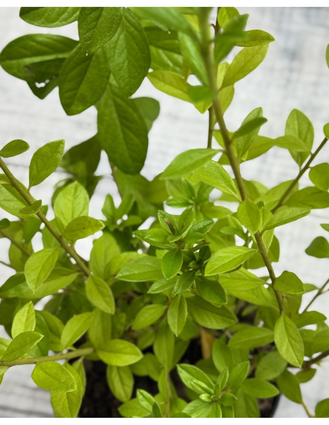Liście są ciemnozielone, błyszczące, częściowo utrzymujące się na roślinie przez zimę, dzięki czemu zachowuje walory ozdobne także poza okresem kwitnienia.