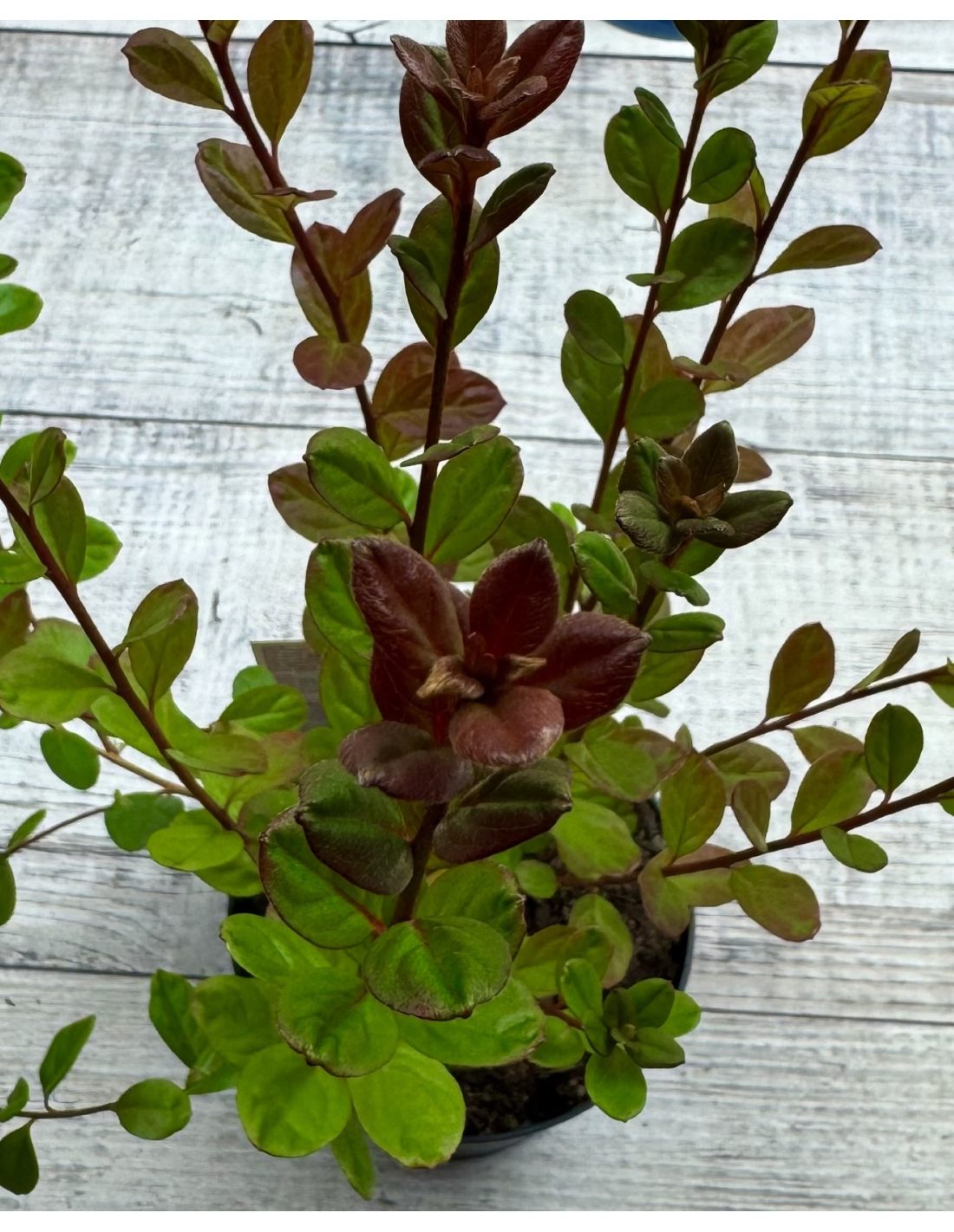 Liście są ciemnozielone, błyszczące i eliptyczne, stanowiąc eleganckie tło dla intensywnie wybarwionych kwiatów. Jesienią i zimą przebarwiają się na brązowozielony lub czerwonawy odcień, dzięki czemu roślina zachowuje walory ozdobne przez cały rok.
