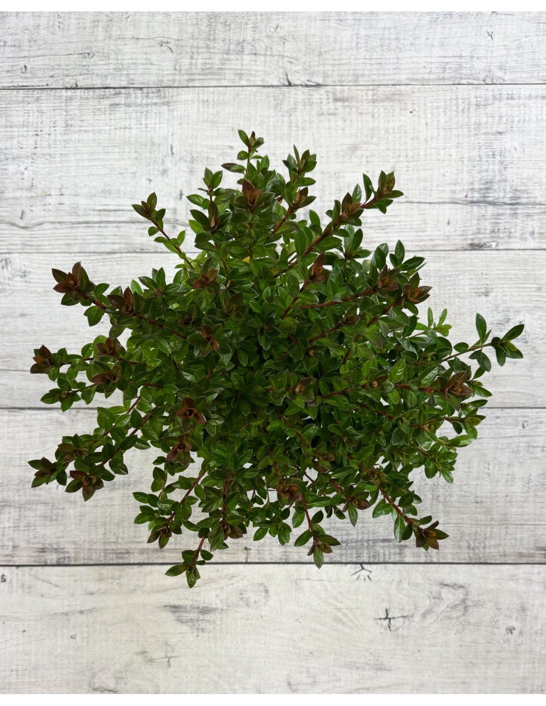 Krzew ma średnią siłę wzrostu i zaokrąglony, regularny pokrój. Po 10 latach dorasta do około 65 cm wysokości i podobnej szerokości, tworząc gęstą, równomierną bryłę. Liście są ciemnozielone, błyszczące i lekko skórzaste, a jesienią przebarwiają się na czerwono-purpurowe, dzięki czemu roślina zachowuje walory dekoracyjne także poza okresem kwitnienia.