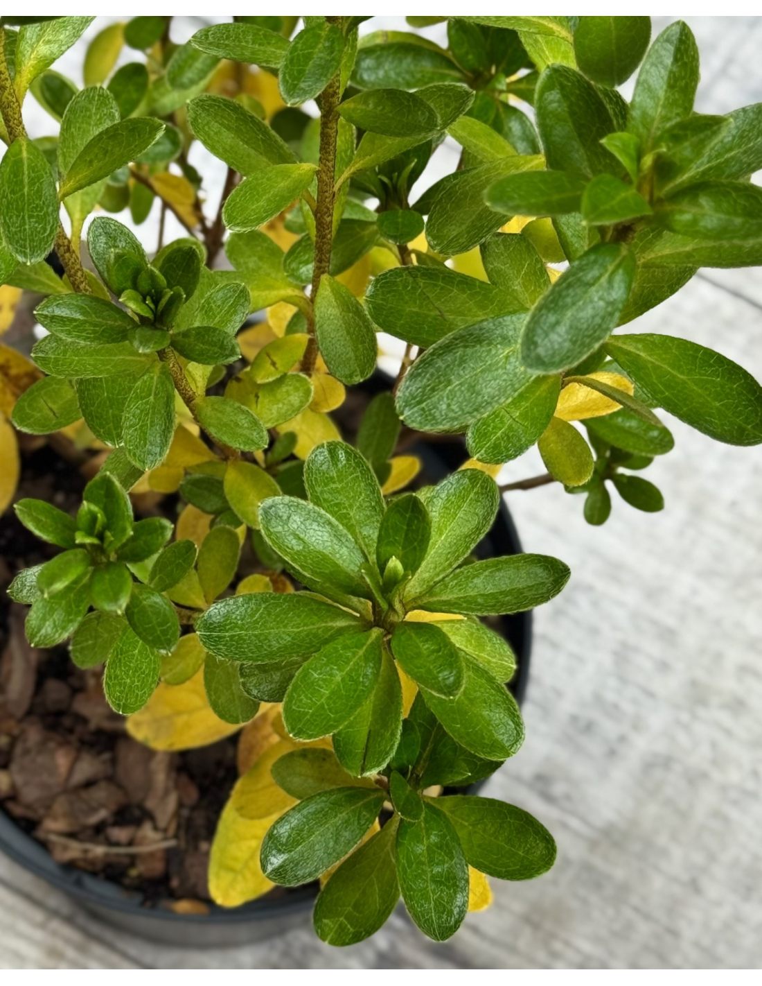 Liście są ciemnozielone i lekko błyszczące, eliptyczne, zdrowe i dekoracyjne. Jesienią pięknie przebarwiają się na odcień żółty, co dodatkowo podnosi walory ozdobne krzewu po zakończeniu sezonu kwitnienia.
