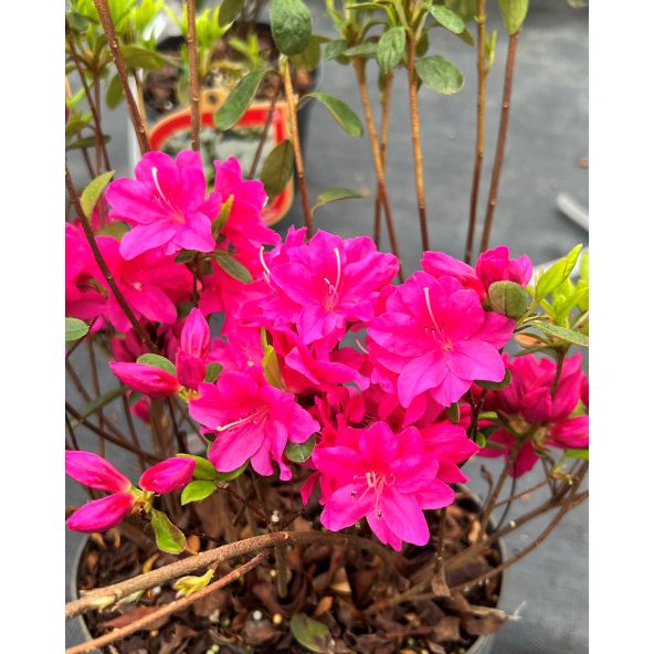 Krzew ma silny, rozłożysty pokrój i z czasem tworzy gęstą, półkulistą formę osiągającą około 0,8–1,0 m wysokości i 1,0–1,2 m szerokości. To odmiana, która prezentuje się bardzo efektownie w czasie kwitnienia – w maju roślina pokrywa się obficie ciemnoróżowymi, dużymi kwiatami, tworzącymi zwarte, gęste kwiatostany. Ich liczba sprawia, że w czasie kwitnienia krzew niemal całkowicie pokrywa się barwą.