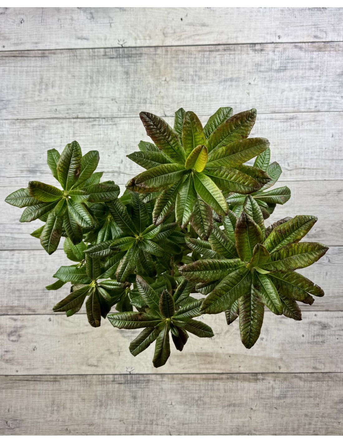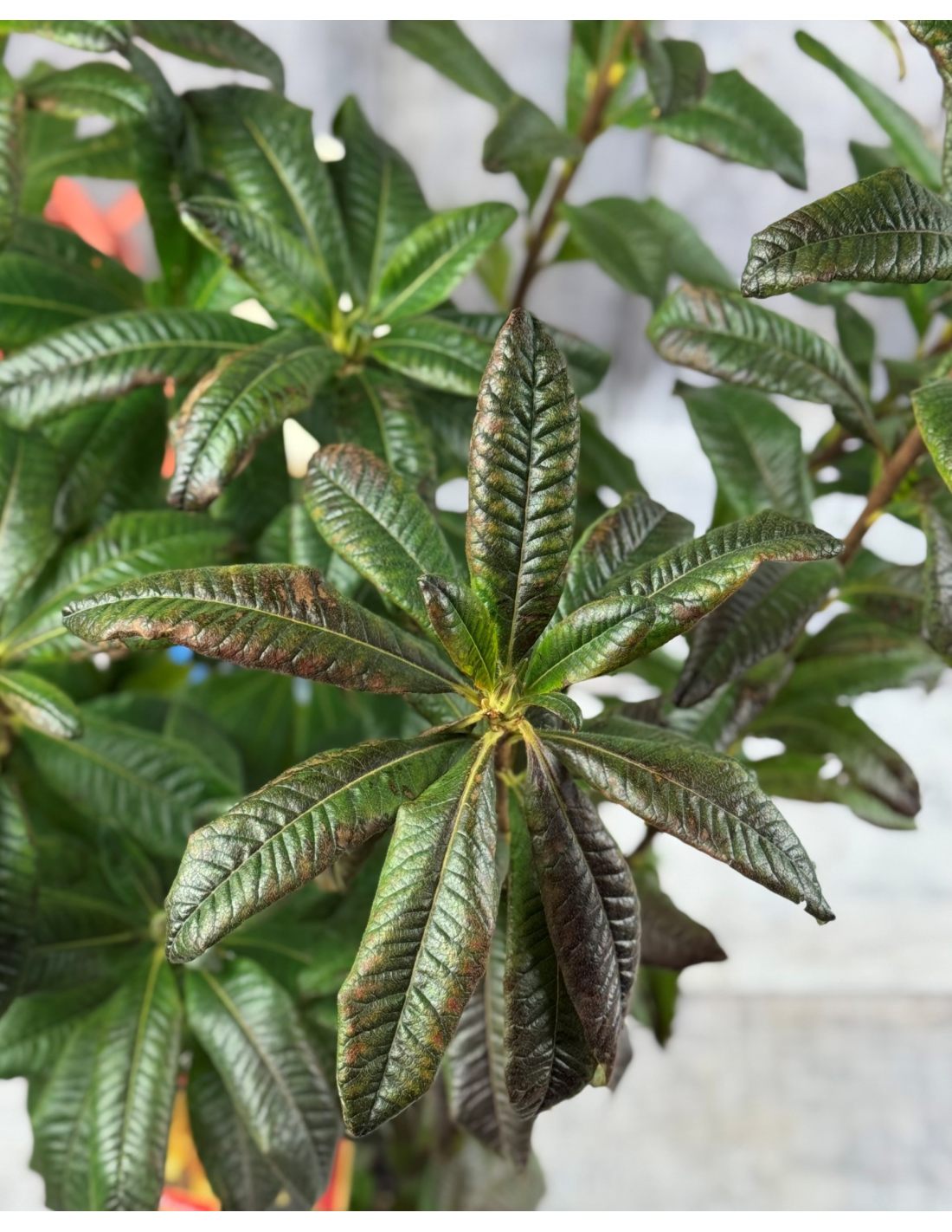 Krzew ma luźny, rozłożysty pokrój i rośnie wolno, po 10 latach osiągając około 80 cm wysokości i 110 cm szerokości. Liście są ciemnozielone, lekko błyszczące, eliptyczne, a młode przyrosty mają subtelny, brązowawy odcień.