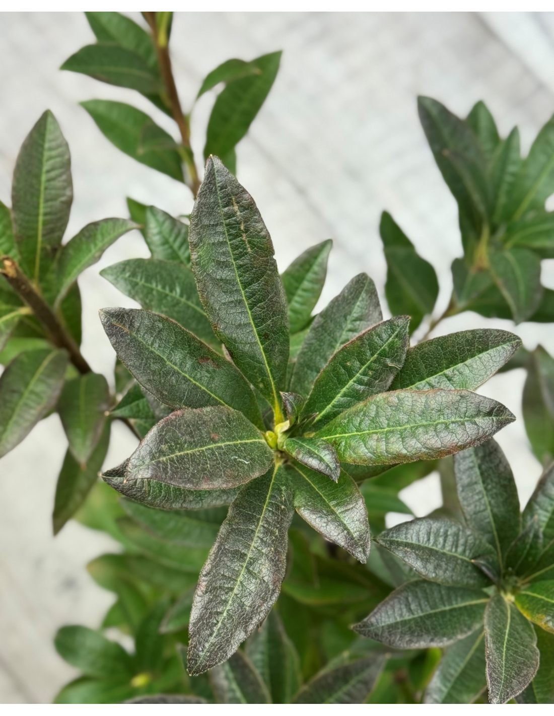 Krzew ma wzniesiony, lekko rozłożysty pokrój i silny wzrost. Po 10 latach osiąga około 1,5 m wysokości i 1,2 m szerokości, a docelowo może dorastać nawet do 4 m. Liście są sezonowe, ciemnozielone, jajowate, o długości do 8 cm. Młode przyrosty mają brązowawy odcień, a jesienią krzew przebarwia się dekoracyjnie w ciepłych tonach brązu.