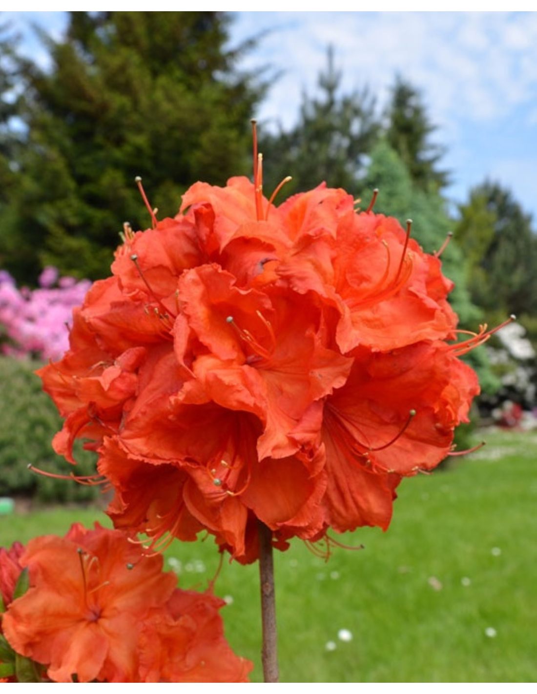 Niezwykle efektowna odmiana z grupy Knapp Hill, wyhodowana przez słynnego niemieckiego hodowcę Hansa Hachmanna. Jej nazwa – „Feuerwerk”, czyli „Fajerwerki” – doskonale oddaje wygląd kwitnącego krzewu, który w maju dosłownie „rozbłyska” ogniście czerwonymi kwiatami.