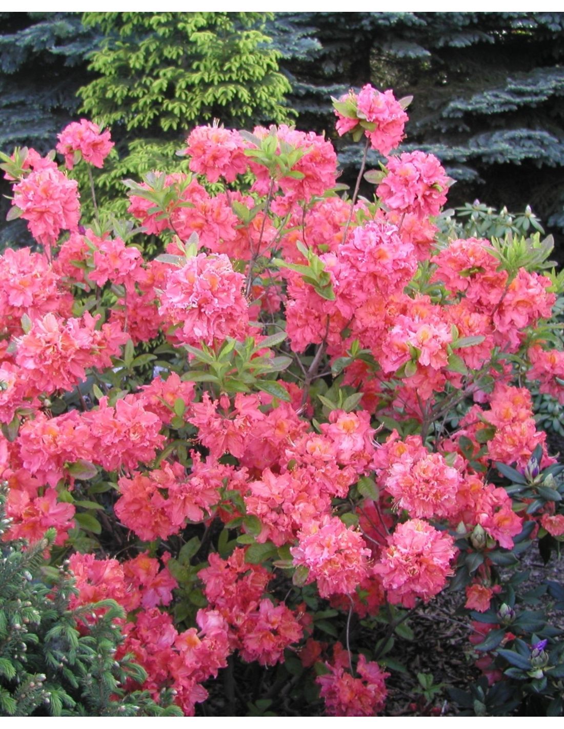 Jedna z najpiękniejszych odmian azalii z grupy Knapp Hill niemieckiej hodowli Hansa Hachmanna, wprowadzona do handlu w 1980 roku. Powstała z krzyżówki ‘Cecile’ x ‘Gibraltar’ i łączy w sobie cechy obu rodziców – intensywne barwy, duże kwiaty oraz niezawodną odporność na mróz.