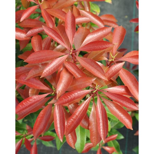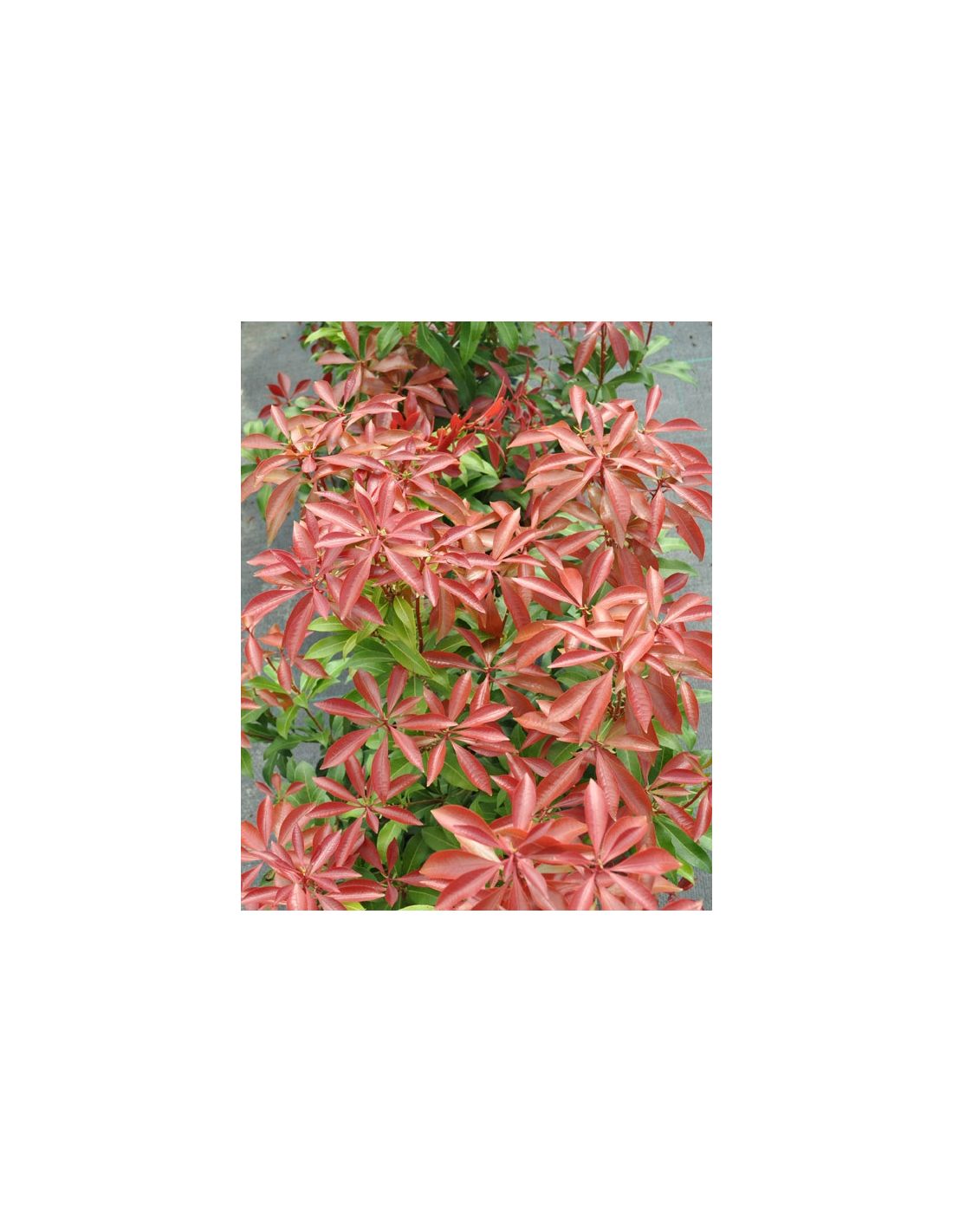 Zimozielony krzew o zwartym i gęstym pokroju. Wiosną przyciąga uwagę intensywnie karminowoczerwonymi przyrostami, a w kwietniu obsypuje się białymi, dzwonkowatymi kwiatami w wyprostowanych wiechach. Idealna do ogrodów, wrzosowisk i pojemników.
