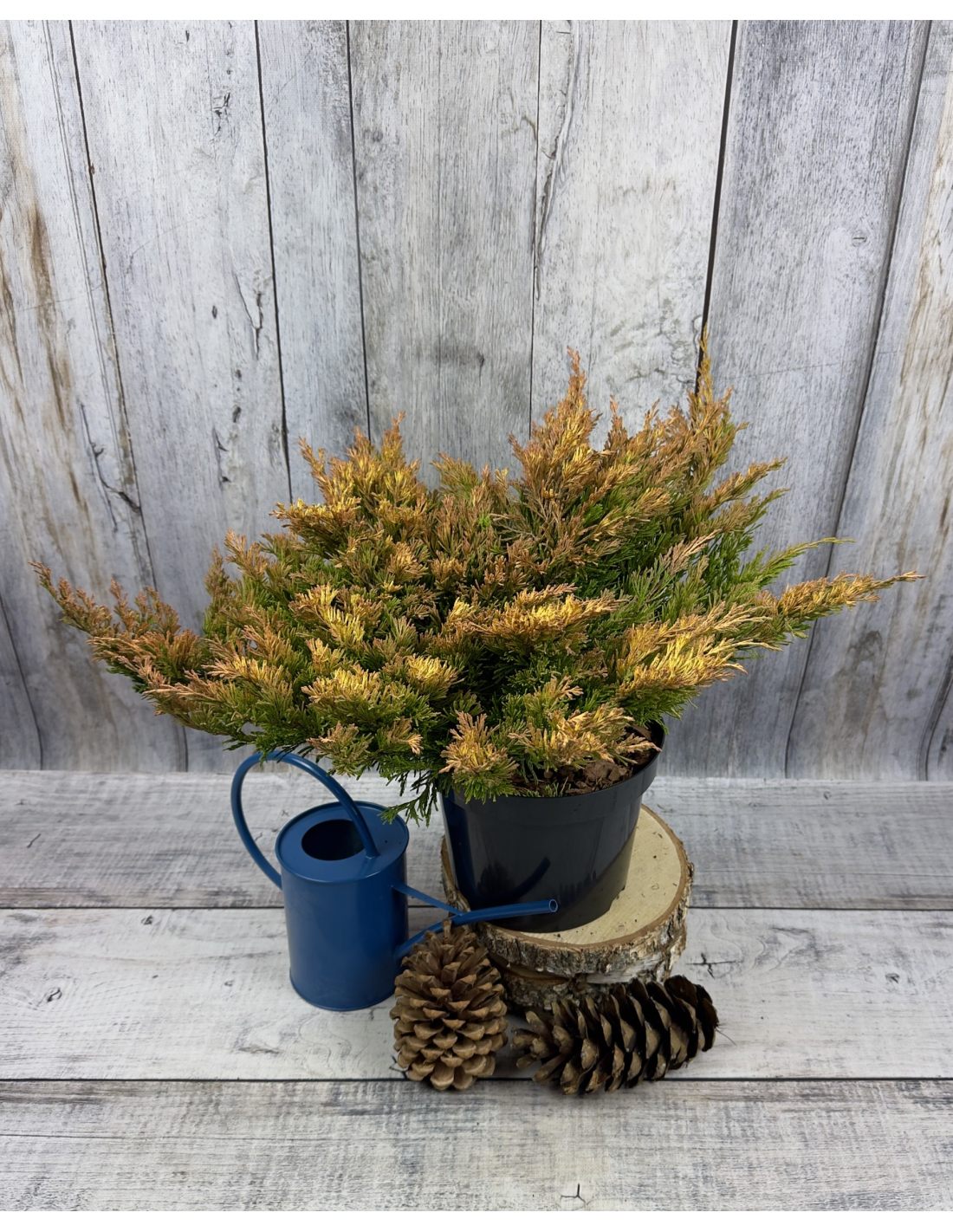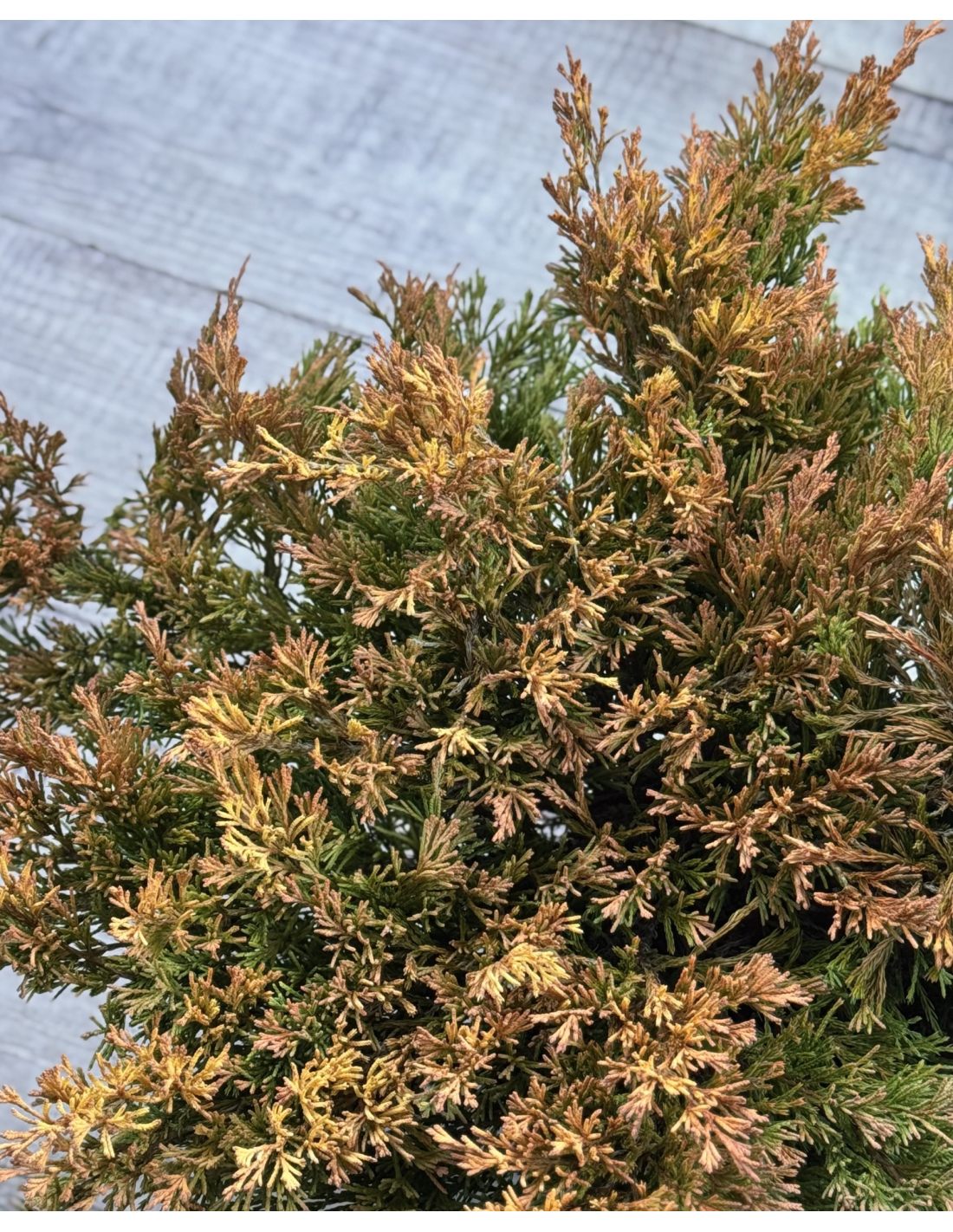 Wolnorosnąca odmiana o zwartym, rozłożystym pokroju. Po 10 latach dorasta do 0,3 m wysokości i 0,8 m średnicy. Młode przyrosty złocisto-żółte, z czasem cytrynowe, od spodu jasnozielone, jesienią i zimą przybierają miedziane odcienie. Roślina zimozielona, odporna na suszę, najlepiej rośnie na pełnym słońcu i przepuszczalnych glebach.