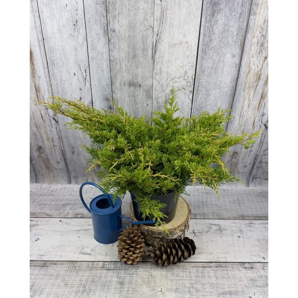 Niski, rozłożysty krzew o złocisto-żółtym ulistnieniu i wolnym tempie wzrostu. Po 10 latach dorasta do 0,8 m wysokości i 1,5–2 m średnicy. Pędy są horyzontalnie ułożone, a młode przyrosty intensywnie złocistożółte, podczas gdy starsze gałązki jasnozielone. Roślina zimozielona, odporna na mróz i suszę, najlepiej rośnie na pełnym słońcu i przepuszczalnych glebach.