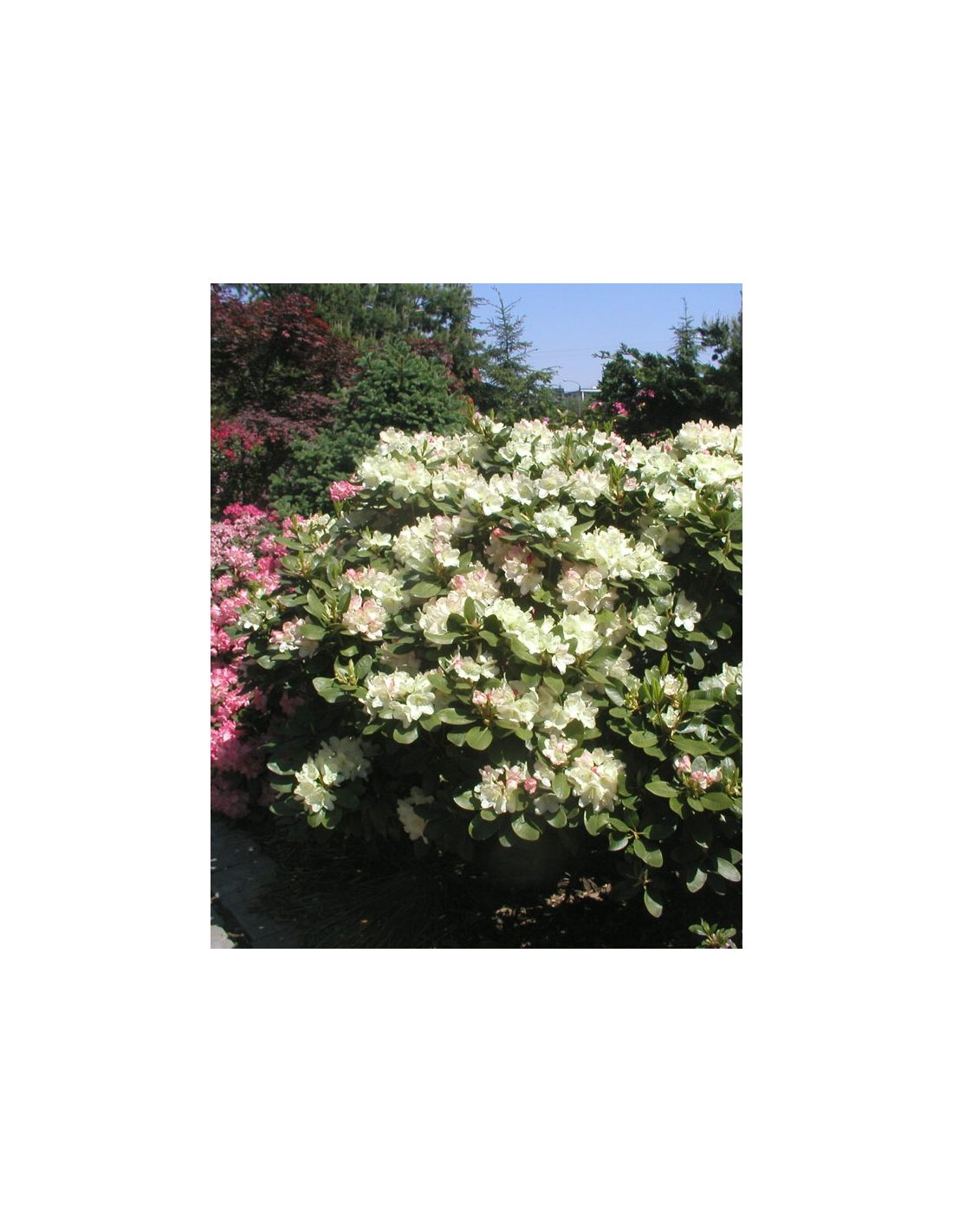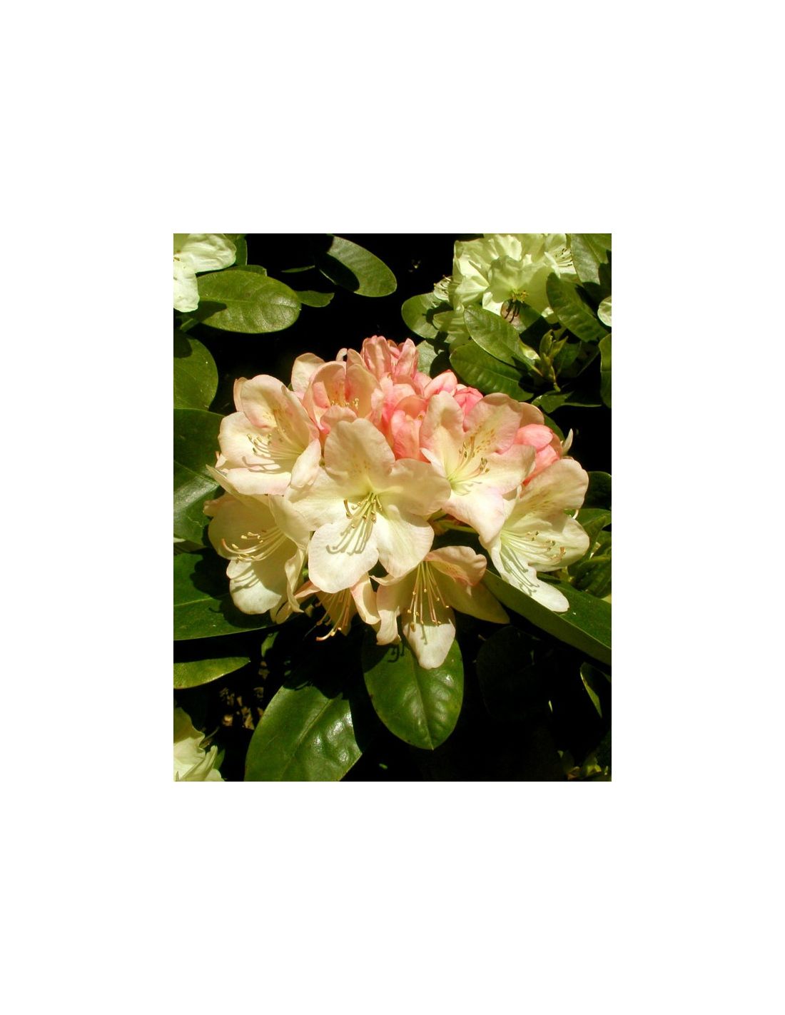 Wielkokwiatowy różanecznik z grupy Wardii o zwartych, szerokich krzewach. Kwiaty rozwijają się z różowych pąków w kremowo-żółte dzwonkowate kwiaty, które z czasem stają się kremowo-białe, średnicy do 8 cm, zebrane w luźne kwiatostany po 9–13 sztuk. Kwitnie druga połowa maja, a krzewy osiągają po 10 latach około 1 m wysokości i 1,5 m szerokości. Mrozoodporność do –20°C.