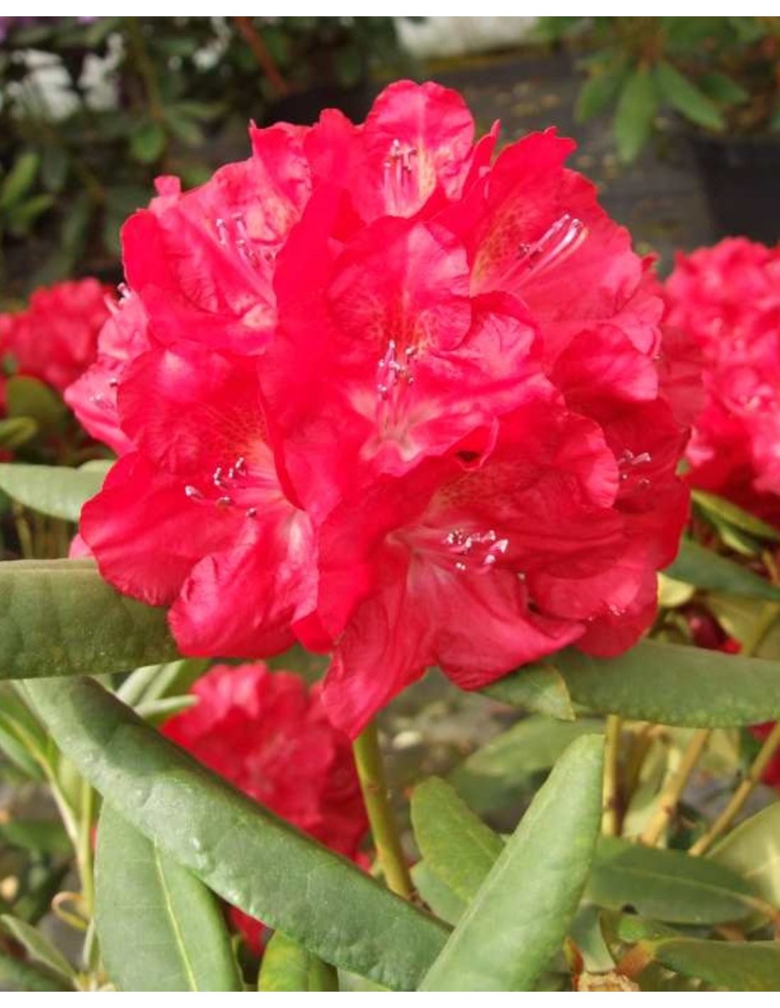 Ostra czerwień kwiatów nie pozwala przejść obojętnie obok kwitnących krzewów. w grupie odmian czerwonych. Rosną zwarcie i dobrze się krzewią, po 10 latach dorasta do około 1,10 m wysokości i 1,40 m szerokości. Charakterystyczne liście: wydłużone, szpiczaste o jasnej krawędzi i wyraźnym unerwieniu. Mrozoodporność do -26°C.