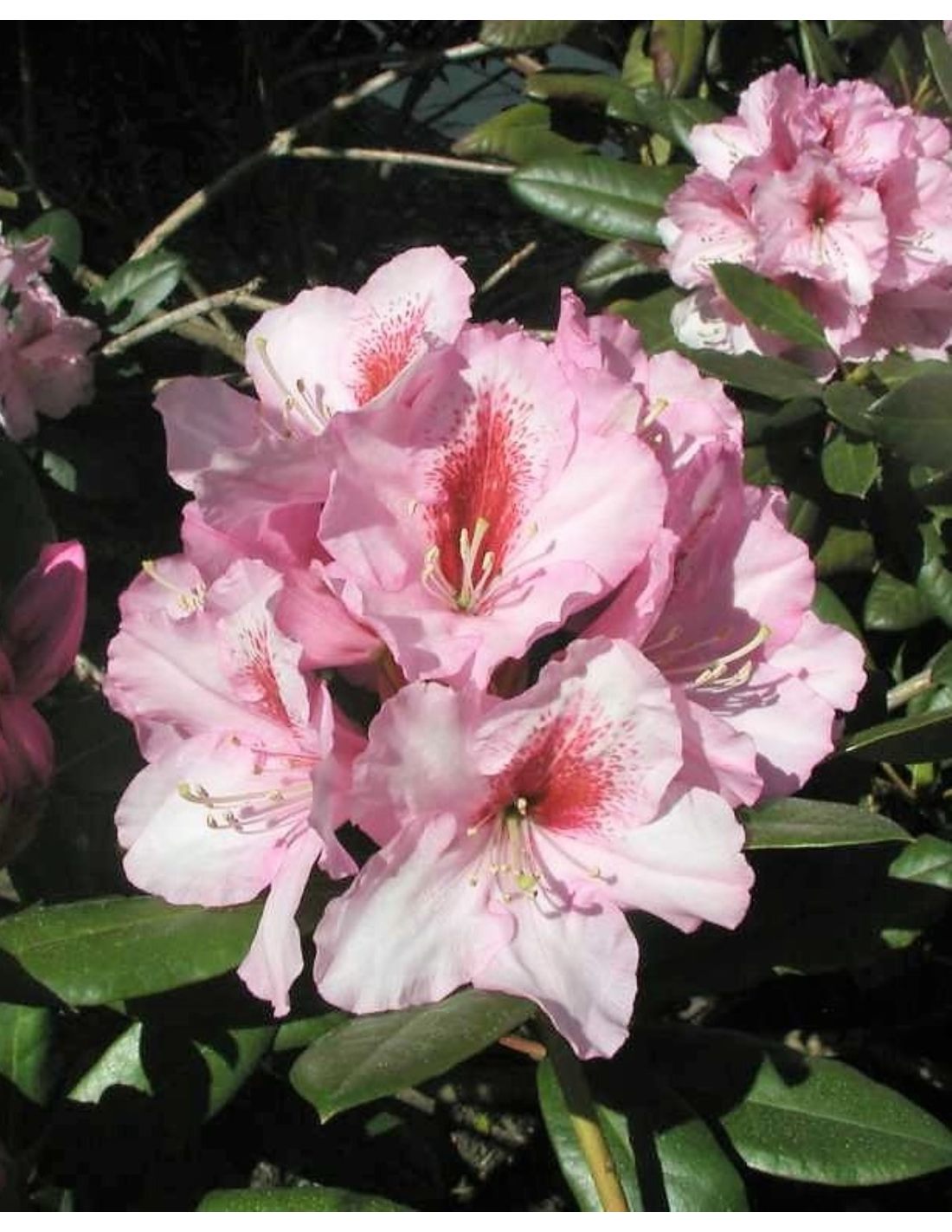 Silnie rosnąca odmiana o połyskujących, ciemnozielonych liściach. Kwiaty różowe z ciemniejszymi brzegami płatków i wyraźną, czerwonobordową plamką na górnym płatku. Kwitnie obficie na przełomie maja i czerwca. Dorasta do około 1 m wysokości i 1,40 m szerokości. Mrozoodporność do –22°C.