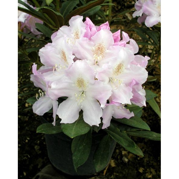 Wyjątkowa odmiana o kulistym, zwartym pokroju i eleganckich kwiatach, które w pąku mają lekko liliowy odcień, a po rozwinięciu stają się niemal białe z subtelnym jasnoliliowym podmuchem i żółtawymi cętkami na górnym płatku. Kwiaty są lejkowate, średnicy 4–5,5 cm, zebrane po około 18 sztuk w kuliste, wierzchołkowe kwiatostany, pojawiające się przełom maja i czerwca, nadając ogrodowi spektakularny wygląd.