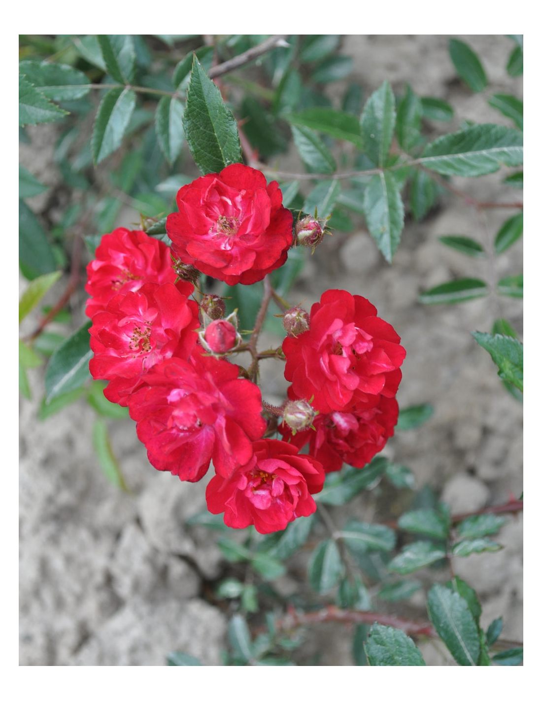 Niska, okrywowa odmiana (Miniature & Climbing Miniature) o intensywnie czerwonych, pełnych kwiatach (Ø 2–3 cm), długim i obfitym kwitnieniu (VI–X). Krzew niski (40–60 cm), zwarty, doskonała do zadarniania, obwódek i pojemników. Mrozoodporna (do ok. –30°C), trwałe kwiaty, polecana do nasadzeń masowych (5–6 szt./m²).