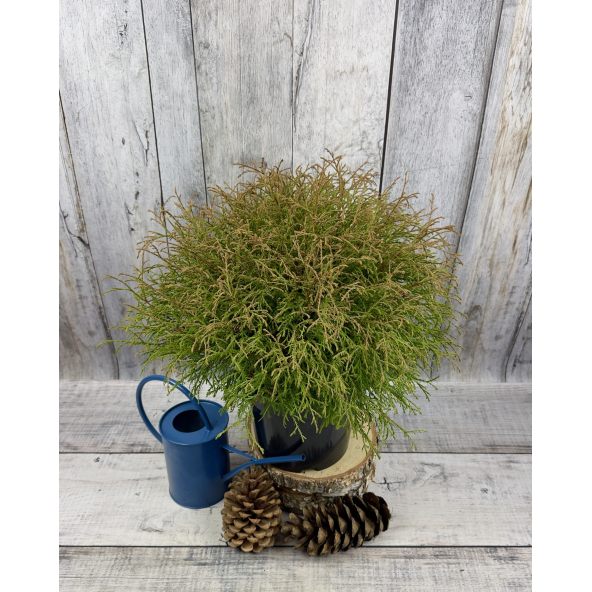 Niezwykle efektowna, wolno rosnąca odmiana o płaskokulistym, ażurowym pokroju, który wyróżnia ją na tle innych karłowych tuj. Po 10 latach uprawy dorasta do około 0,7 m średnicy, pozostając kompaktową i idealną do niewielkich przestrzeni ogrodowych.